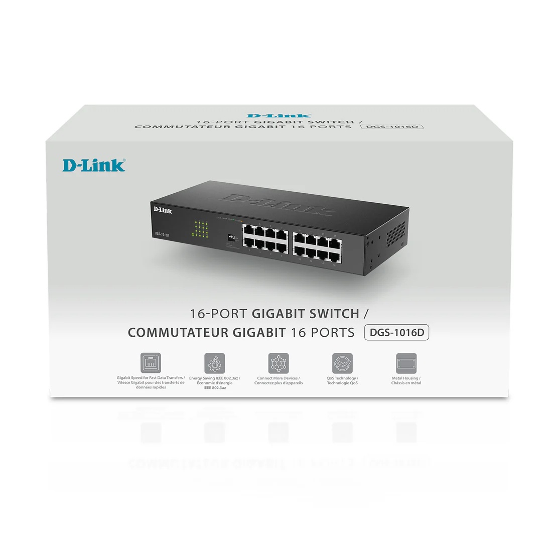 The D-Link DGS-1016D 16-Port Unmanaged Gigabit Switch offers an economical way for SOHO and Small-to-Medium Businesses (SMB) to take advantage of Gigabit Ethernet speeds while reducing energy consumption and minimising noise output.