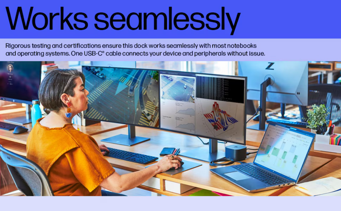 Focus on your work and not your compatibility with a dock that works seamlessly with most notebooks and operating systems. Whether you use Windows, Mac, or Chrome OS—rigorous testing and certifications ensure that one USB-C® cable connects your device and peripherals without issue.