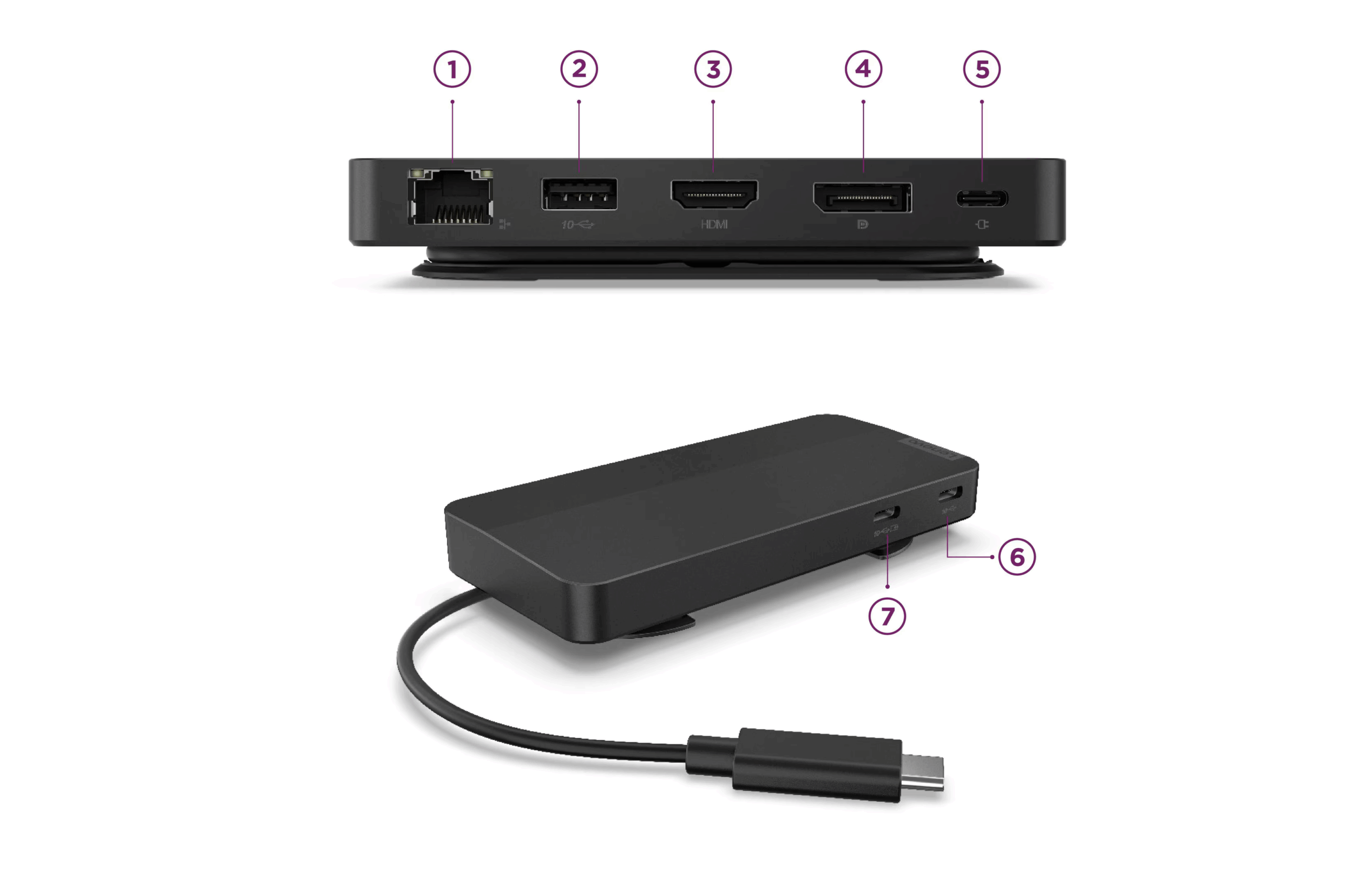 This travel dock gives you seven expertly engineered ports, including dual 4K display outputs at 60Hz, high-speed USB, and Ethernet connections—all in a pocket-sized design to maximize productivity wherever work takes you.