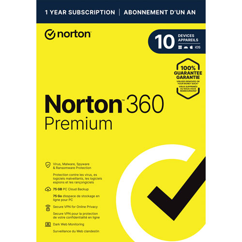 Norton 360 Premium provides comprehensive malware protection for up to 10 PCs, Mac, Android or iOS devices, plus Parental Control to help protect your children online, Password Manager to store and manage your passwords and PC Cloud Backup.