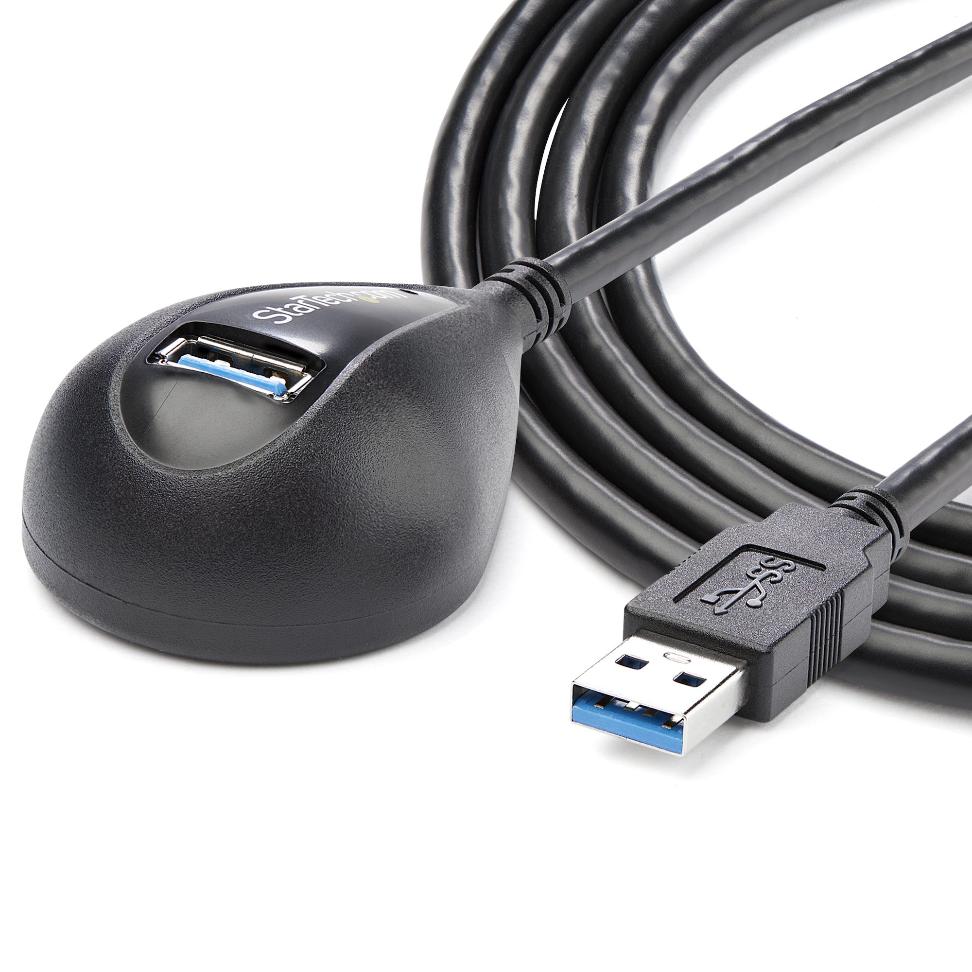 The USB3SEXT5DKB Black Desktop USB 3.2 Gen 1 Extension Cable connects to an available USB female port on a Mac® or PC computer, allowing you to relocate the USB (female) port up to 5-feet away from the computer case. By extending the USB 3.2 Gen 1 port away from the computer case, you can situate a USB 3.2 Gen 1 port from the computer in a more practical spot, such as on top of the computer case or on a desktop.The extension cable features high quality Shielded Twisted Pair (STP) construction, helping to prevent electro-magnetic interference and ensuring reliable data communication.A perfect solution for accessing digital cameras, MP3 players, USB flash drives or other external USB storage devices, the USB 3.2 Gen 1 male to female A-A Cable is backed by StarTech.com’s Lifetime Warranty.