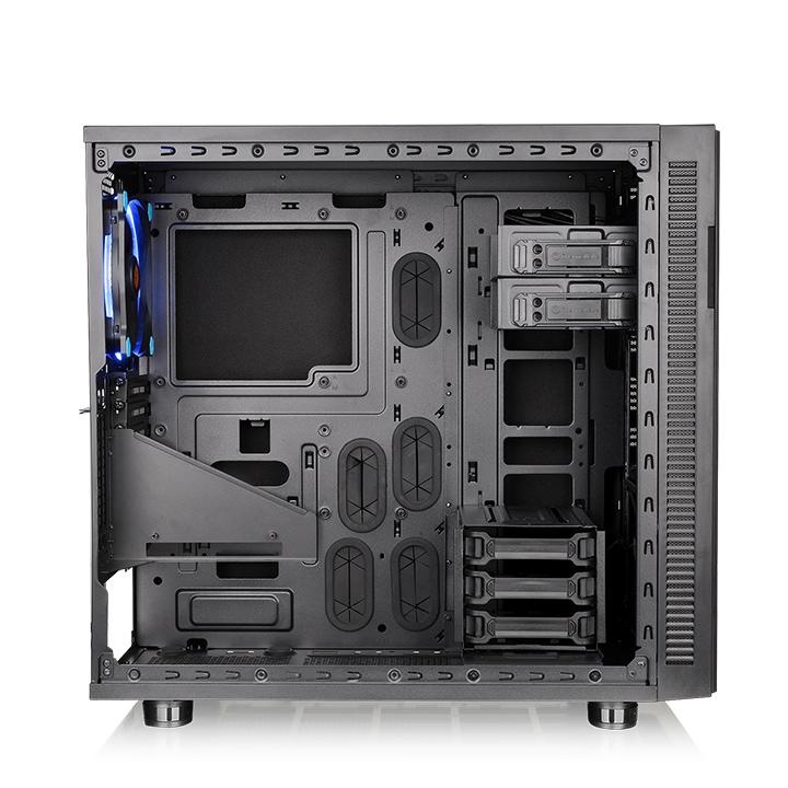 The Suppressor F31 Tempered Glass Edition mid-tower chassis features a durable 4mm thick tempered glass window, riser GPU support bracket with optional PCI-e riser cable, a preinstalled 140mm Riing Blue fan, leading-edge sound reduction panels on all sides, and its outstanding system ventilation. With the unparalleled expandability for high-end configurations and liquid cooling system, the Suppressor F31 supports the latest PC hardware, and all high-end GPU solutions. Thermaltake Suppressor F31 demonstrates the perfect balance in silent operation and cooling performance.