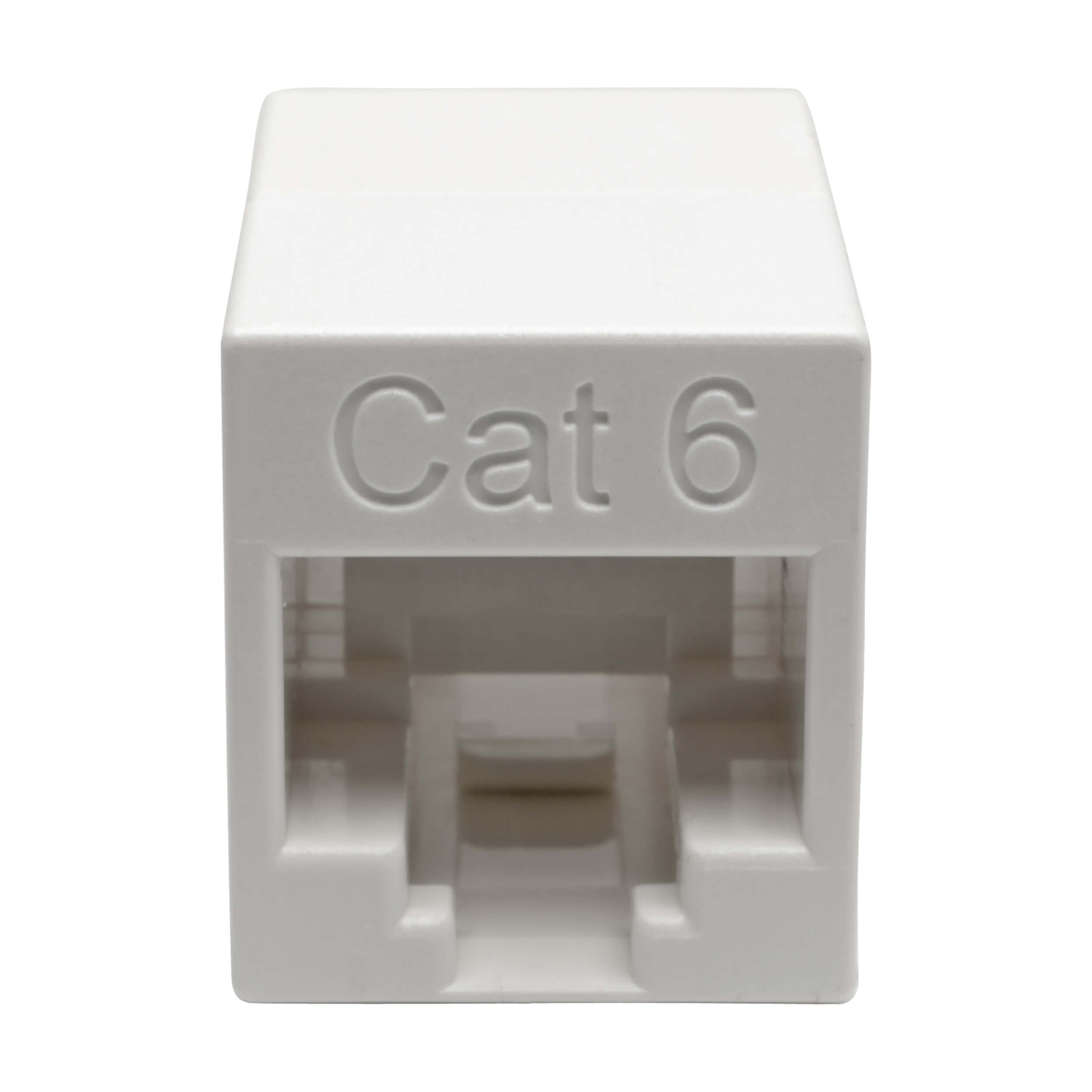 Strengthen your high-speed network with this N234-001-WH Cat6 Straight-Through Modular Compact In-Line Coupler. It connects two Cat6 patch cords to create one longer cable, and its compact in-line design is recommended for convenient feed-through patching. Built for ultra-fast performance, this is an ideal coupler when setting up premise wiring, voice/data networking, telecommunications and Ethernet connections.