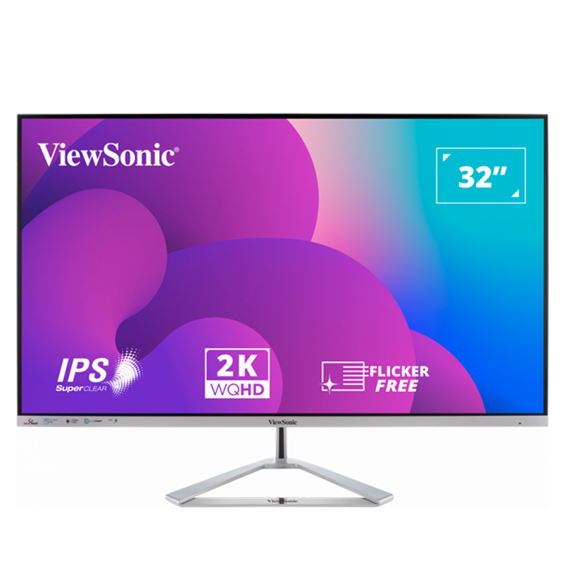 The ViewSonic VX3276-2K-mhd is the perfect blend of style and performance with features that include a sizeable 32″ frameless bezel, a minimalist design, and WQHD (2560 x 1440) resolution. Design features such as an ultra-slim profile, metallic silver triangle stand, and a sleek edge-to-edge frameless bezel give the monitor a premium feel that fits nicely both at home and in the office. VX3276-2K-mhd leverages IPS panel technology and rich 10-bit color to produce an extensive array of vibrant colors with wide viewing angles. Stereo sound is provided by the monitor’s dual integrated speakers, while DisplayPort, Mini DP, and 2 HDMI ports offer flexible connectivity options for both general usage and gaming.
